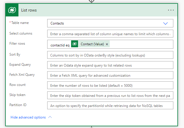 2.2 Retrieve the records the data from which are pulled into the word document. Note that even when only one record is expected, use the List records action regardless. The reason for that is in Step 2.4, the Select data operation requires an array as the argument in its input parameter.